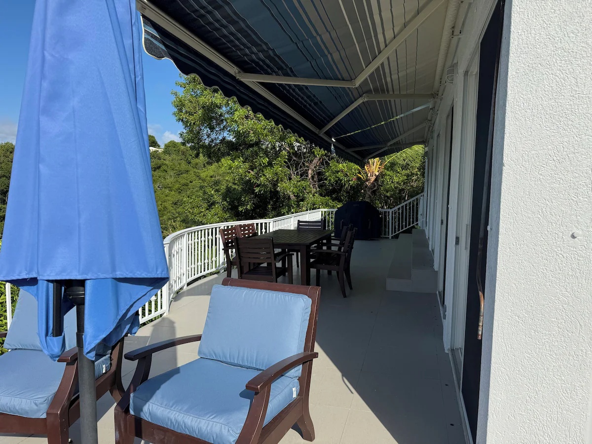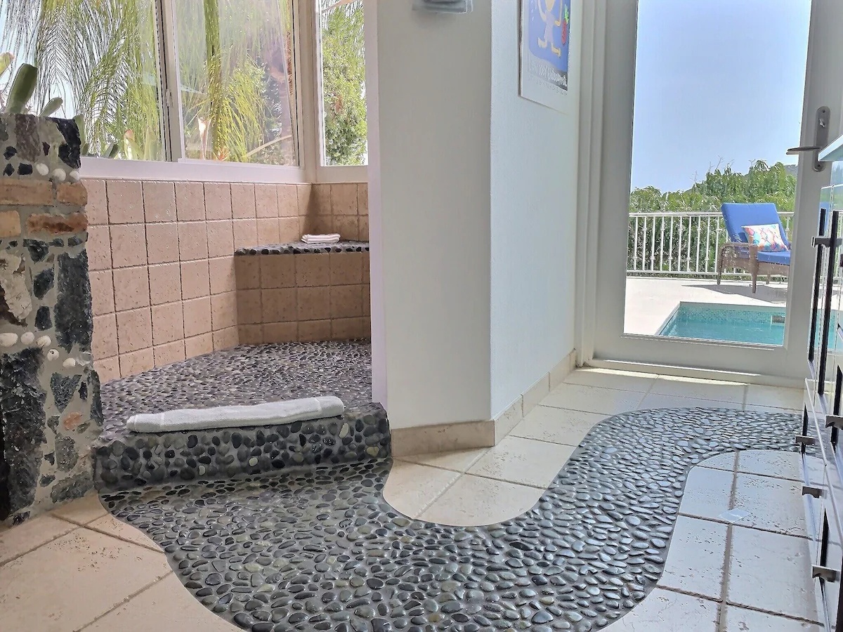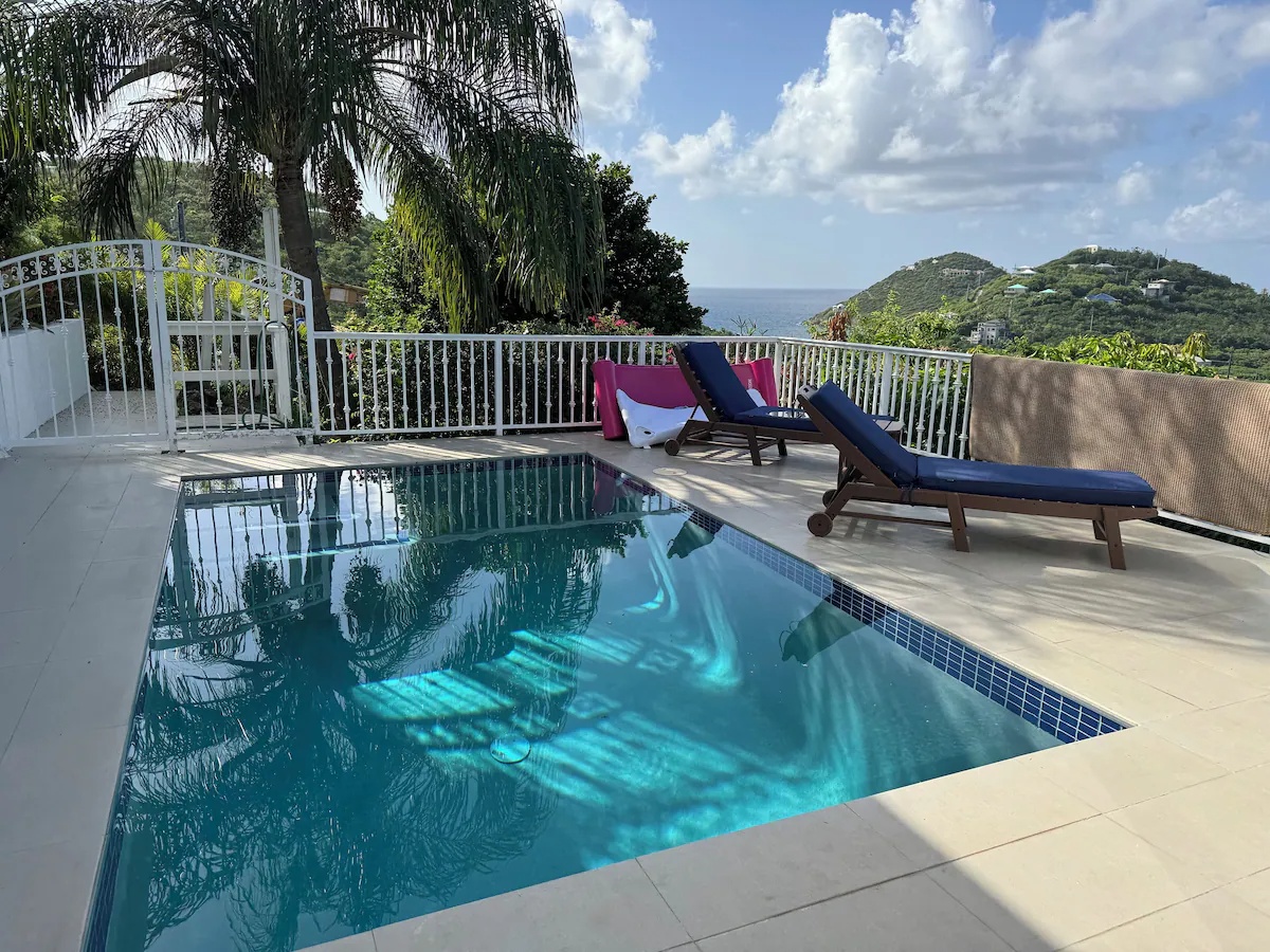The house is situated on a hill overlooking Chocolate Hole and the view is stunning. The wraparound deck and small pool was an ideal spot to relax after exploring beautiful St. John each day. Having two bathrooms with showers was ideal for our family of six adults. Tamela was very communicative before arriving and had good meal recommendations.